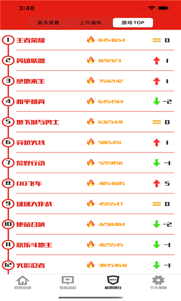 最热排行:可以在这里快速找到热点,知道什么资讯最多查看与上升最快,还可以查看到游戏热度排行榜。