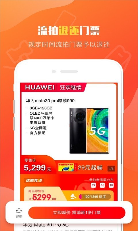虎鲸拍拍app是一款新推出的竞拍购物商城软件,各类热门的畅销商品来这里可以拍卖获得,从最低价加价拍卖,用户可以相对较低的价格买到自己需要的商品,超出自己的预算,竞拍的金额会退还到用户的账户之后,能够放心的来这里竞拍到自己想要的商品!