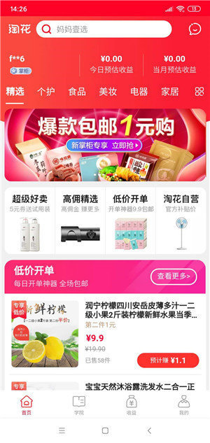 1、在淘花网小程序首页,可以看到淘大的促销活动和商品渠道,里面包含了大量的优惠产品。
