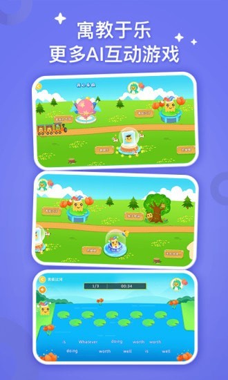 2.提供丰富趣味的专业互动教学课堂和学习场景,通过软件助力孩子快乐轻松的学习。