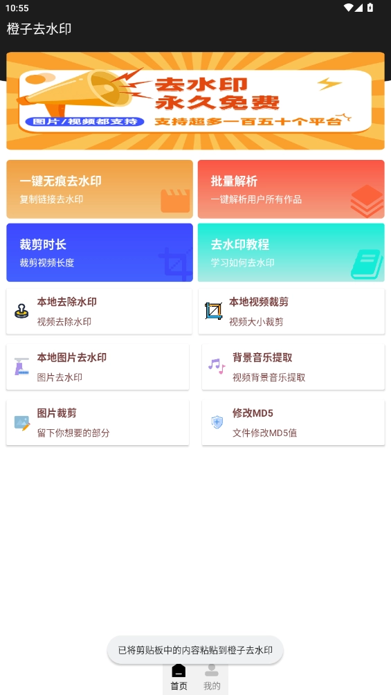 橙子去水印app是一款是专业的视频去水印工具,支持多种平台使用,简单操作就可以快批量取视频哦。