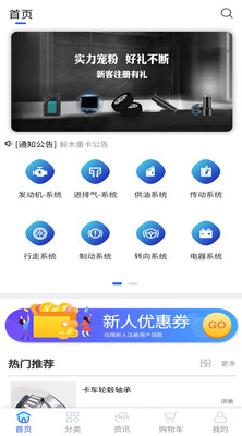 3、在线客服、信息资讯等功能的商用车后市场线上采购平台。