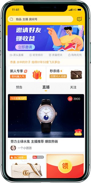 2、拍卖专区、二手交易、直播互动、社区娱乐等多板块!