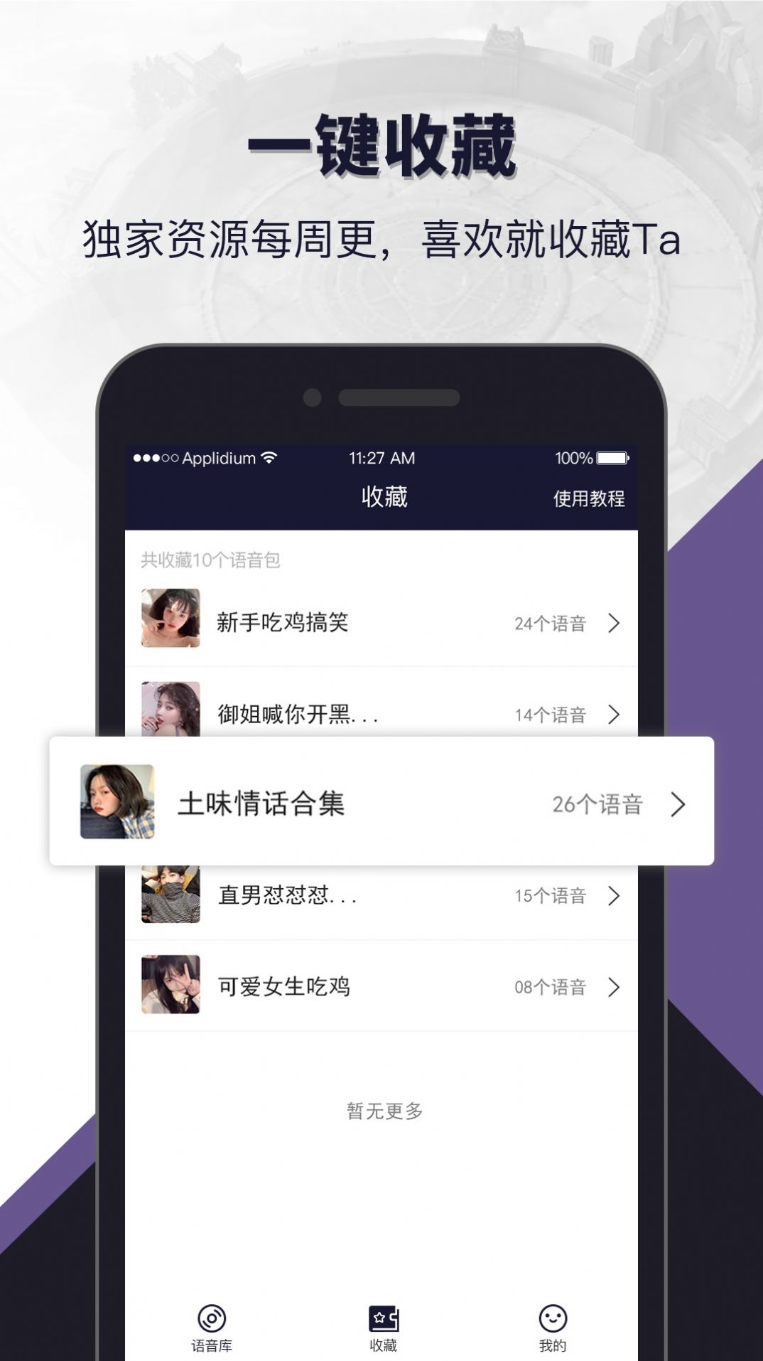 选择大量的语音包资源,轻松更改聊天语音,易于使用,多种游戏语音包供您选择;