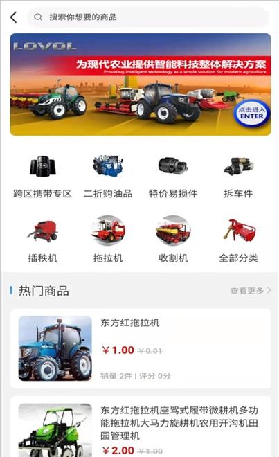 提供二手农机行业高效、便捷的交易场景。并辅以农机零配件商城版块,