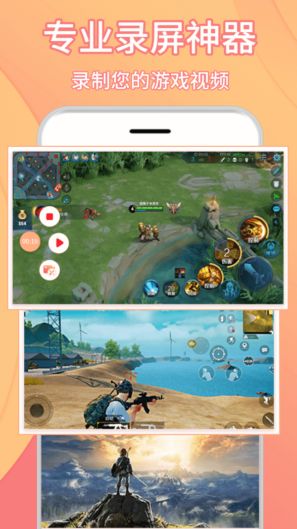 手机屏幕录制,手机超级屏幕截图,视频编辑,全部一步!平稳记录手机游戏,例如“和平精英”,“ QQ速度”,“王者荣耀”,“穿越火线”等,分享游戏技能,制定游戏策略,并成为游戏大师。