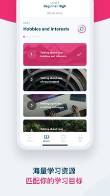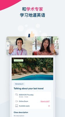 2、学习资源独家设计的真实的生活场景,旨在助你自信说英语
