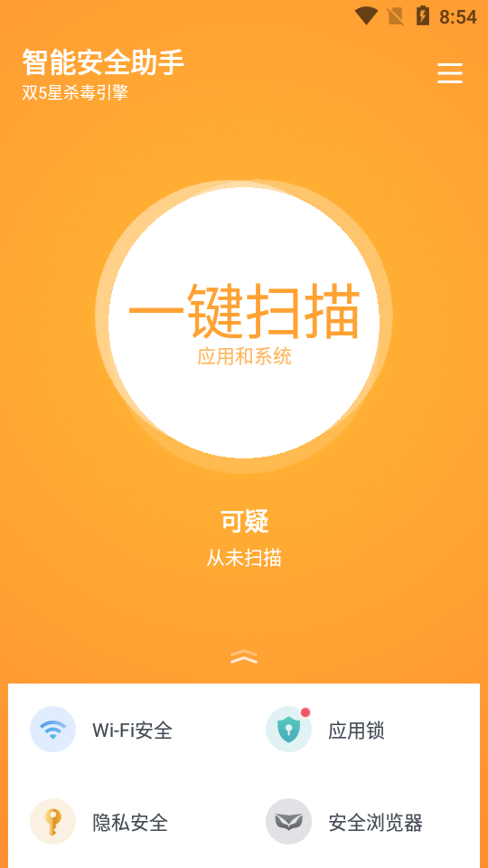 3、使用这款应用时,用户可以放心自己的手机信息隐私,安全连接可用的wifi,清除含有病毒风险的非法软件干扰,一站式解决用户手机的安全问题。