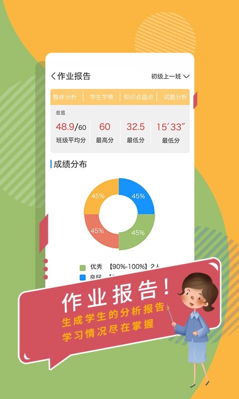 2.还可以在线推送作业,生成学生分析报告,进行不同方面的数据分析;