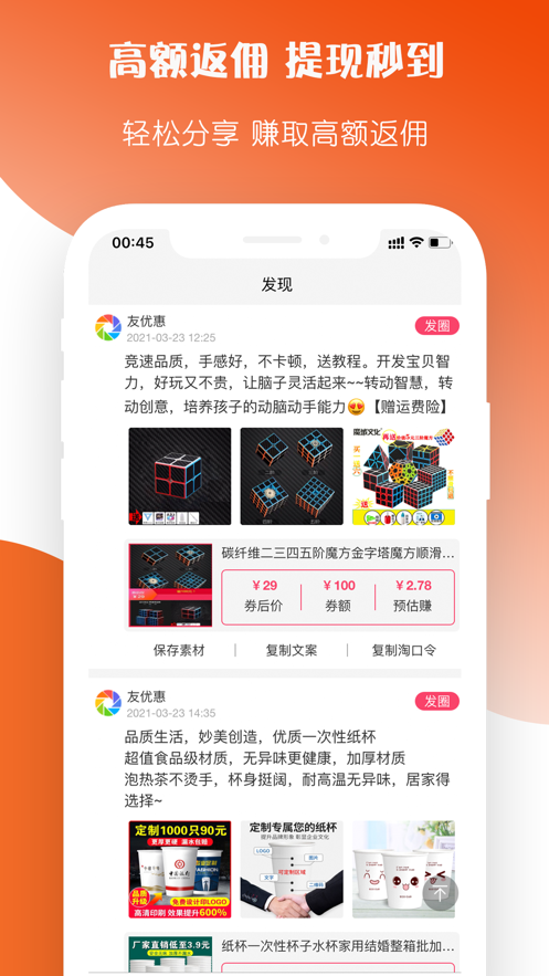 友优惠app是一款各种好商品的手机网购软件,不仅可以让你购物省钱还可以在线挣钱,快来体验一下吧!