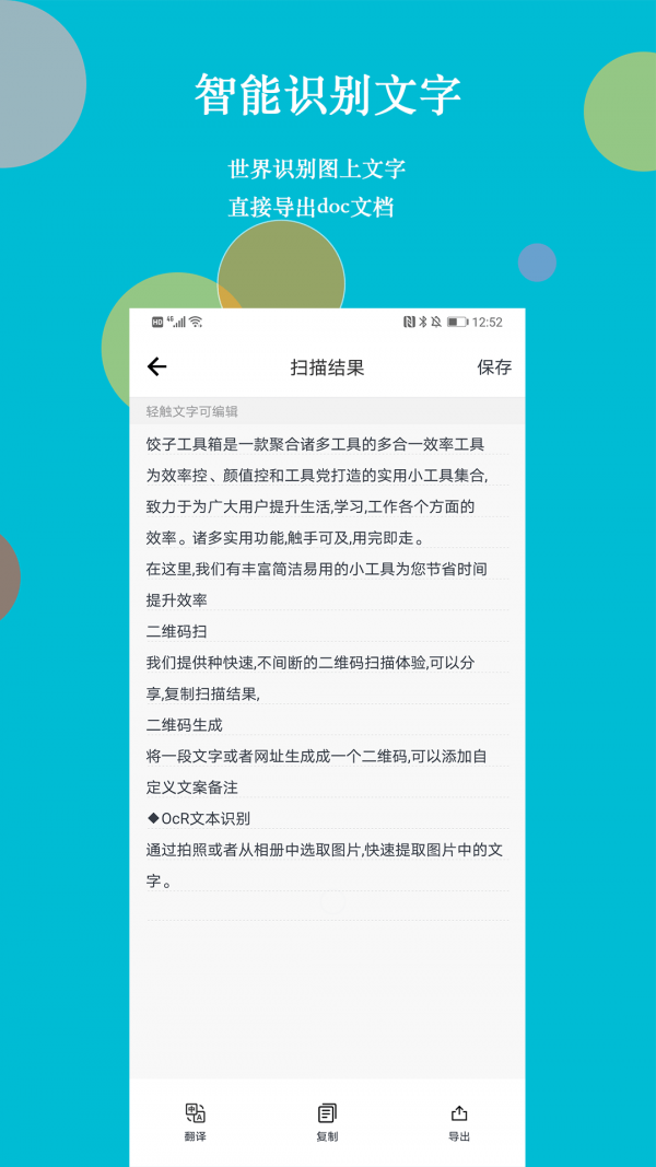 饺子工具箱app是扫描仪扫描文本的辅助工具软件。饺子工具箱app支持一键智能识别图片文档的上传文本内容,速速下载尝试吧!