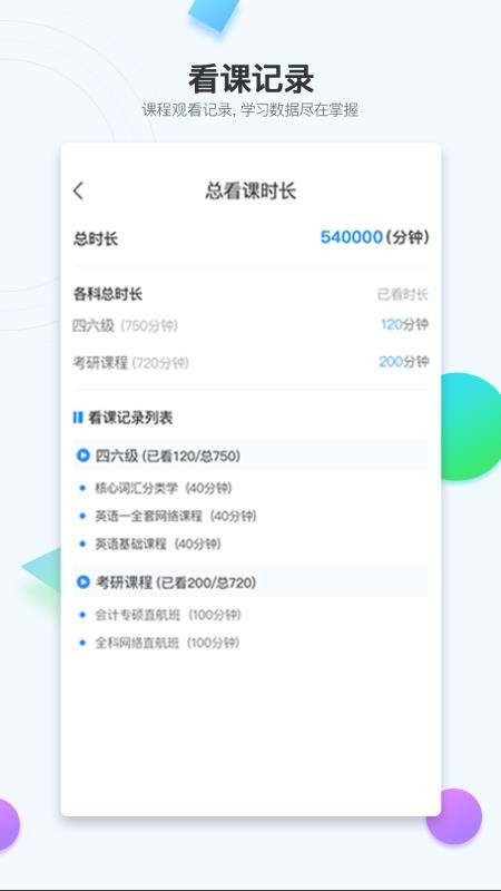 3.平台会记录你的学习情况,让你更好的学习,了解你的学习内容;