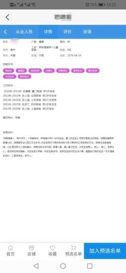 2.阿姨简历在线查看,头像、基础信息、证件、从业年限一目了然;