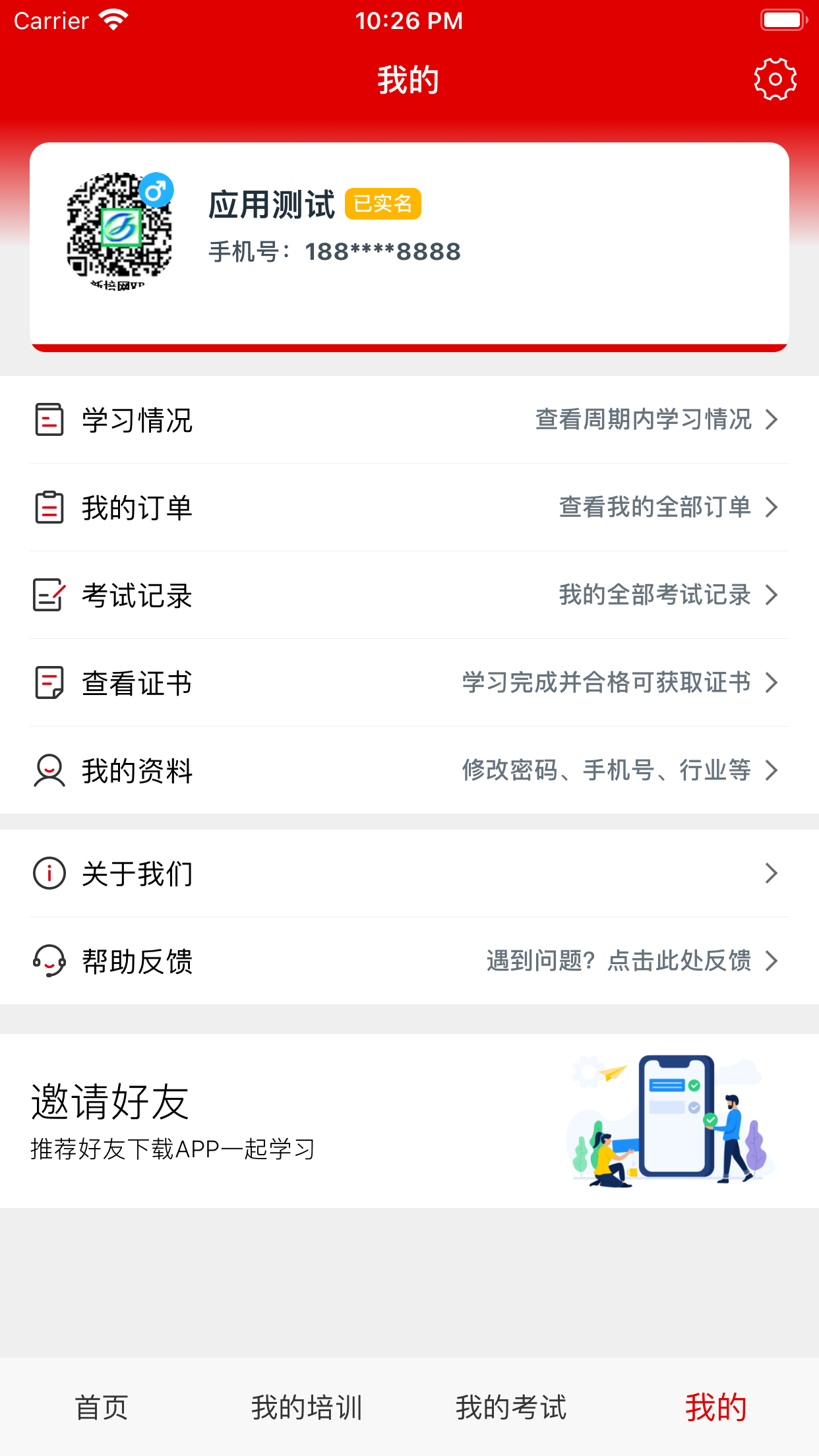 2、邀请好友,推荐好友下载APP-起学习,我的学习,随时查看个人学习课程;