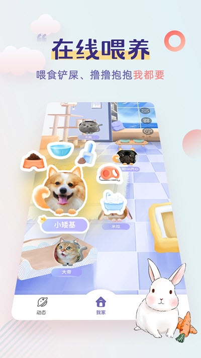 2、还能给可爱的小宠物喂养食物,和它一起玩游戏等多种服务,可以为爱宠人士提供云养殖的应用;