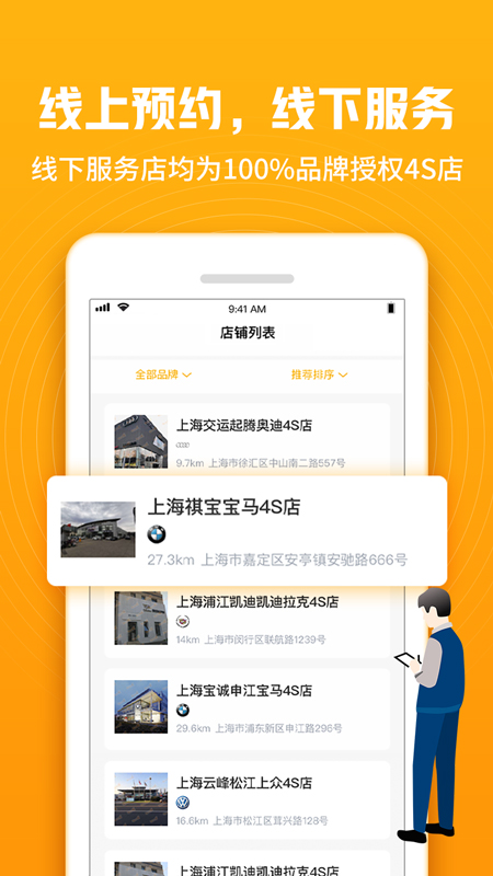 2.店铺查询附近的网点,选择自助洗车或手动洗车;