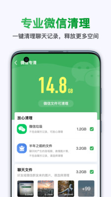 3、深度清理微信聊天中产生的图片、视频、音频等文件,聊天更加流畅。