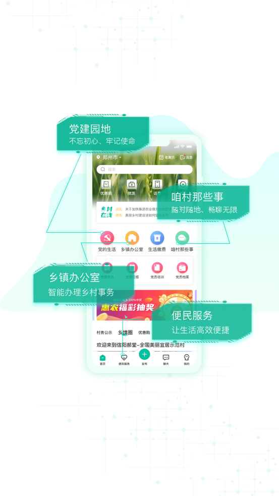 专业的乡村服务app,超多的便民功能提供给用户选择使用,大大便捷了生活!