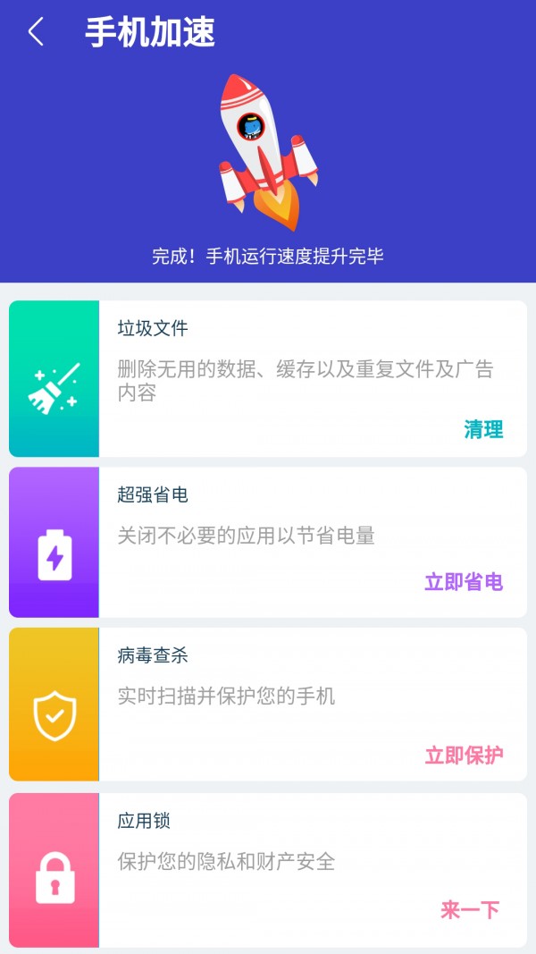 清洁垃圾,改善手机卡顿,病毒扫描和病毒防护;