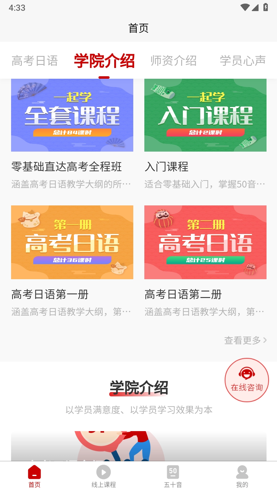 用户在软件上了解更多的精选课程,线上展开学习体验