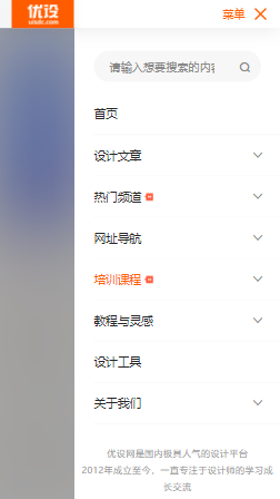 优设网是国内人气最高的网页设计师学习平台。坚持开放、分享、成长的宗旨,为广大设计师及设计爱好者提供免费的交流互动平台。目前正通过网站、微博@优秀网页设计、qq群、微信 ID:youshege,为设计师免费提供高水准的行业设计讲座和领先的设计资讯分享。