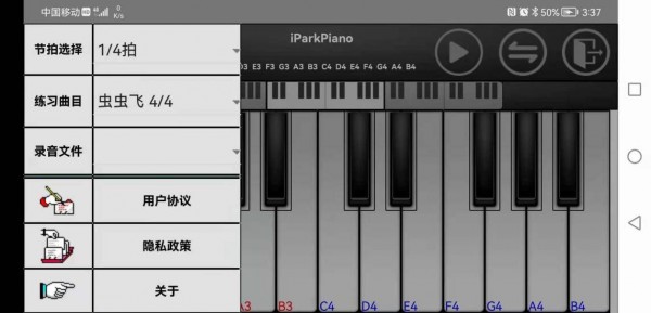3、一款简单易用的盈派悦动24键键盘钢琴模拟器,包含有练习,节拍器,录制,播放,管理录制文件等等功能,操作简单,方便,适合入门钢琴学习。