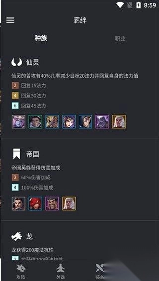 3、在这里,你还可以了解英雄的属性技能,羁绊的组成效果等等