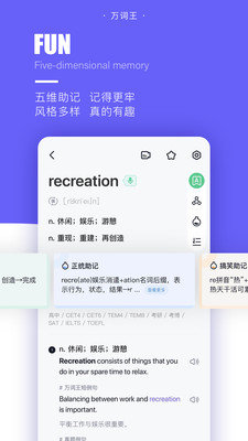 3、基于超级记忆原理,为单词提供正统、巧记、搞笑、笔记四种记忆模式。