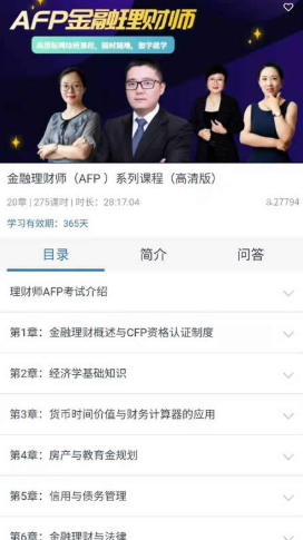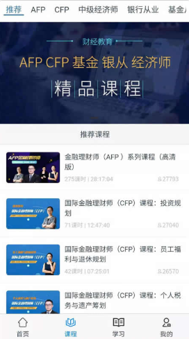 1、为用户提供了AFP、CFP、CPA、等等的资格证培训的课程管理,以及各种学习发方案