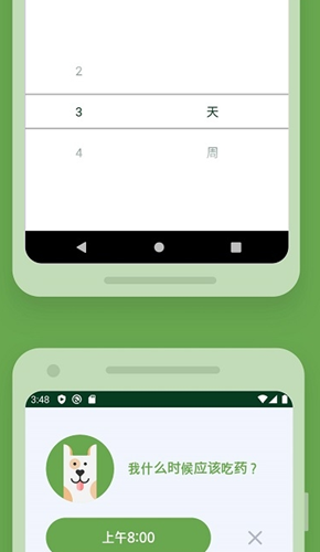 1.在软件中,用户可以自行的设定吃药提醒的模式,软件中有十分有趣的宠物电话提醒,让用户在获得吃药消息提醒的同时,还可以获得十分有趣的软件使用体验。