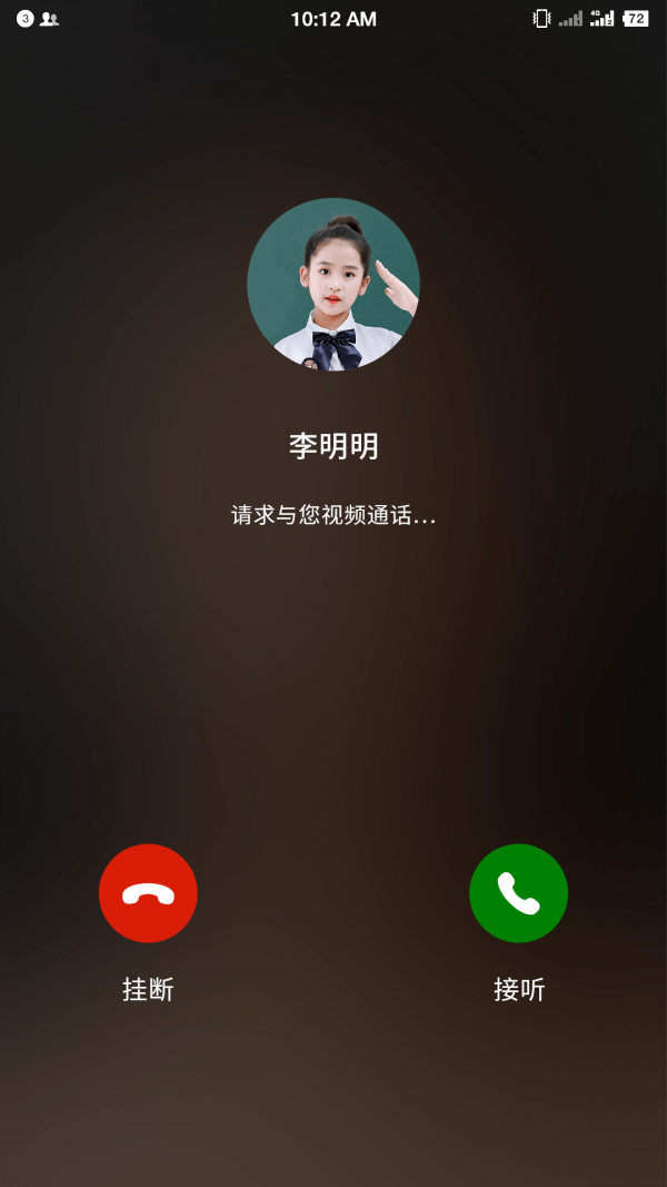 2.可以随时与老师在线沟通交流,,接收孩子通过校园智慧班牌中家校互动入口发起的音视频电话应用