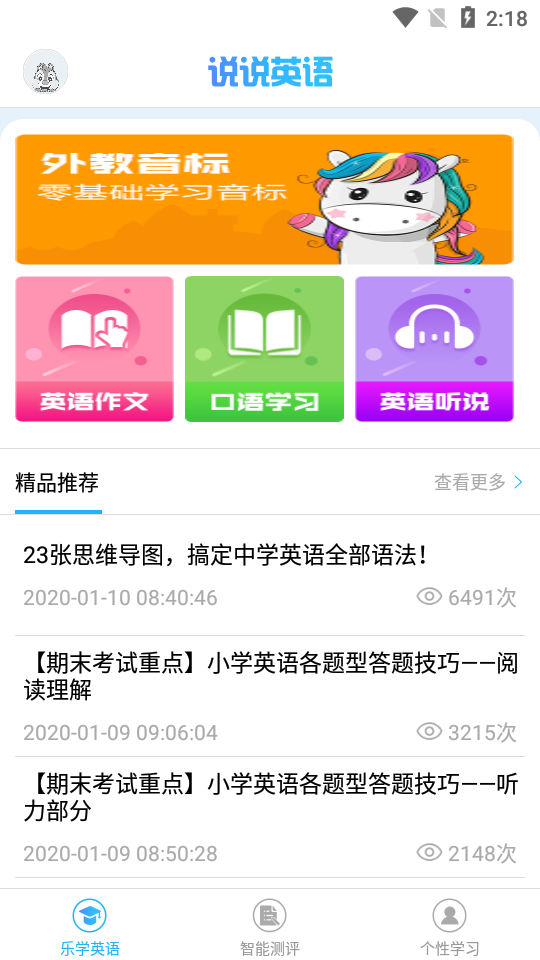 2.基于中小学英语学习特点,运用移动技术手段,通过配音听力、智能测评、英语作文等手段,完美呈现语言学习中的听、说、读、写各种场景,构建立体学习模式,感知兴趣学习方式。