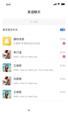 在英文聊天界面,用户可以接收好友的各种英文信息,在软件中添加好友,选择软件的语言模式;