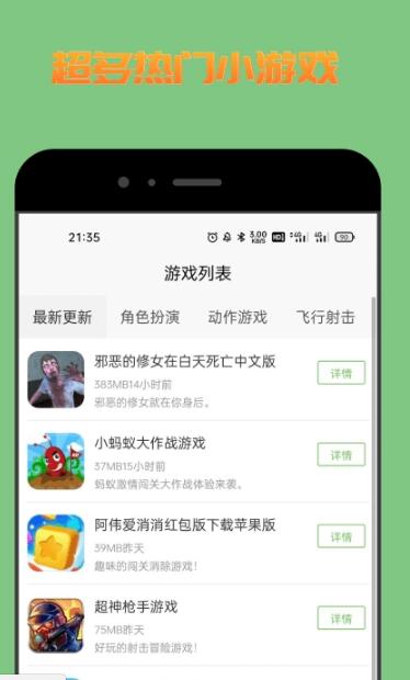 1.软件上的游戏种类很多。用户可以选择自己喜欢的尝试;