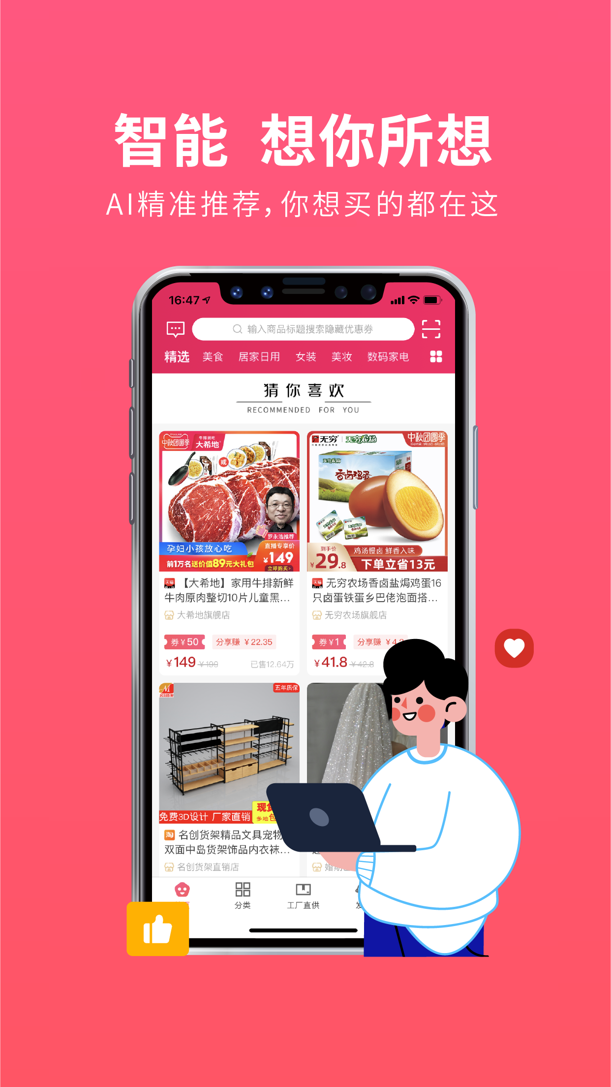 3、更智能:AI推荐,猜你喜欢,直击你心中所想,购物更快捷。