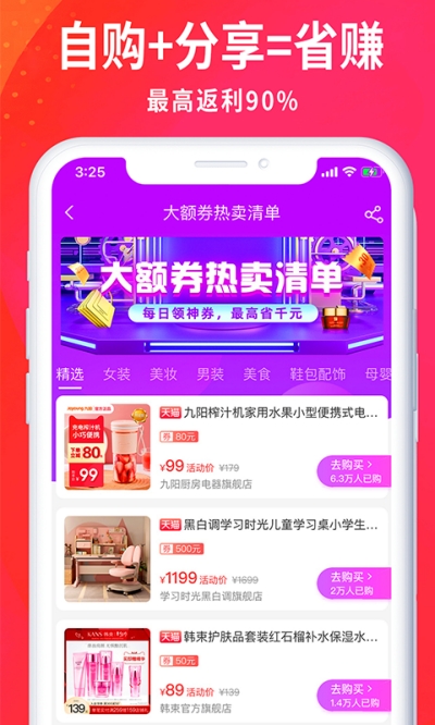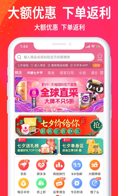 3、淘宝天猫优惠券一键领取,价格优惠还有返利,天天都是双十一。