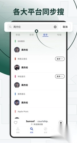 发条音乐app是一款具有全局麦克风的手机音乐播放软件,软件中功能十分不错,支持4大音乐应用同时搜哦。