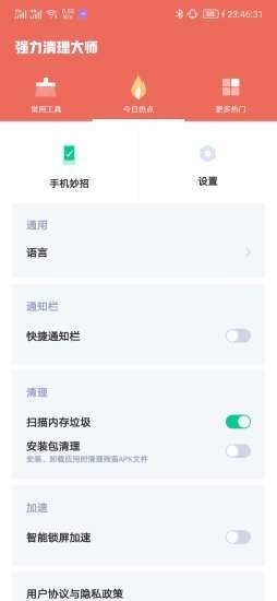 大文件清理功能安装及卸载手机时智能检测清除垃圾。