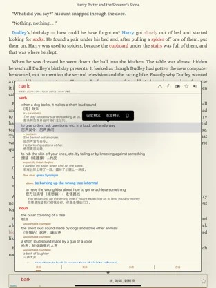 2、不会的单词只要点击单词就可以得到翻译,翻译后软件将自动规整到生词本中。