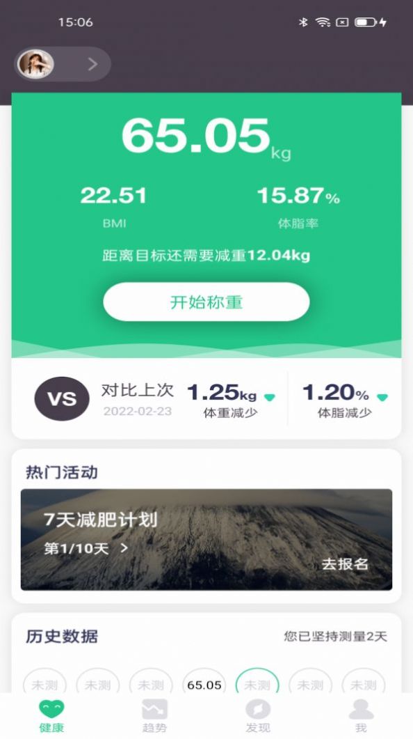 - 好友绑定功能,体质数据趋势图
