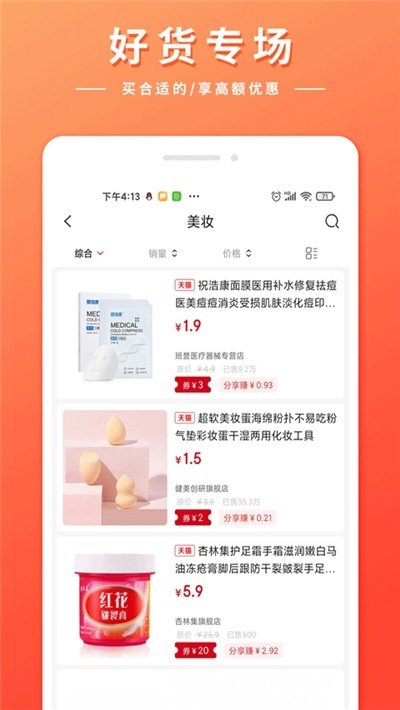 2.包括每日推荐、精选优品、一元秒杀、白菜价、好单库、9.9包邮、直播间、商城返利等各个模块,每天更新上万件优质商品。