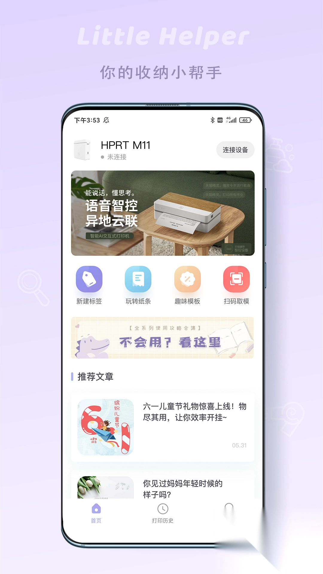 1、印条是一款用来制作标签的应用程序,通过连接汉印家用标签机,来实现标签打印功能。