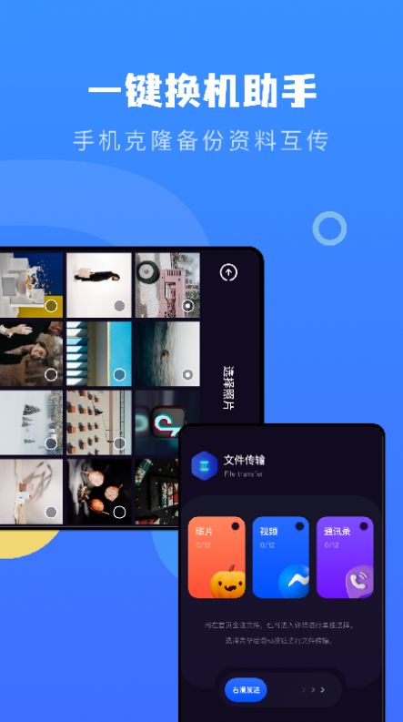 3、快捷的手机换机和文件传输工具可达10M每秒,手机直连快传技术蓝牙SIM卡互传资源不费任何手机流量零消耗。