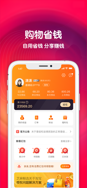 快速推荐他人成为会员,随时随地查询收益,吃喝玩乐,随时随地