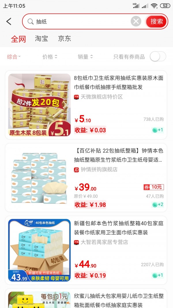 2.包括每日推荐、精选优品、一元秒杀、白菜价、好单库、9.9包邮、直播间、商城返利等各个模块,每天更新上万件优质商品。
