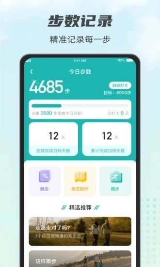 1、运动健康软件,用户可以进行步数记录、运动打卡等;
