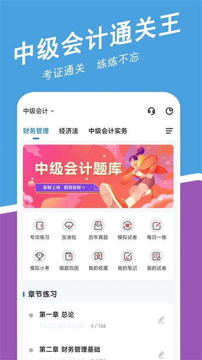 历年真题全部收录在软件里,让大家都可以通过学习可以顺利拿到中级证书