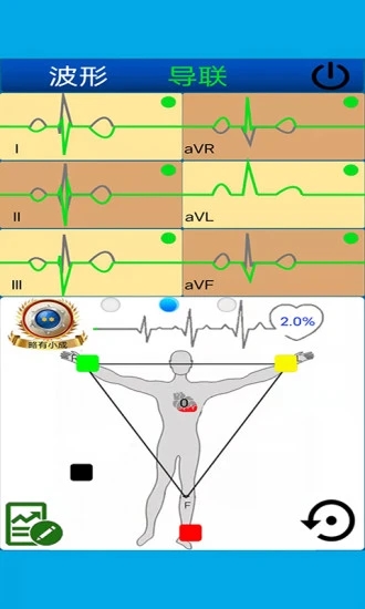 1、心电图计算器导联功能可以模拟心电图机各种接法呈现出对应的心电图;
