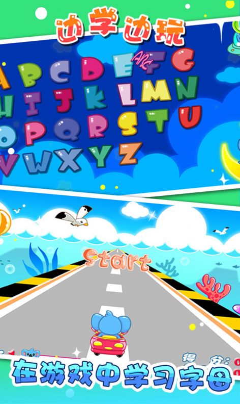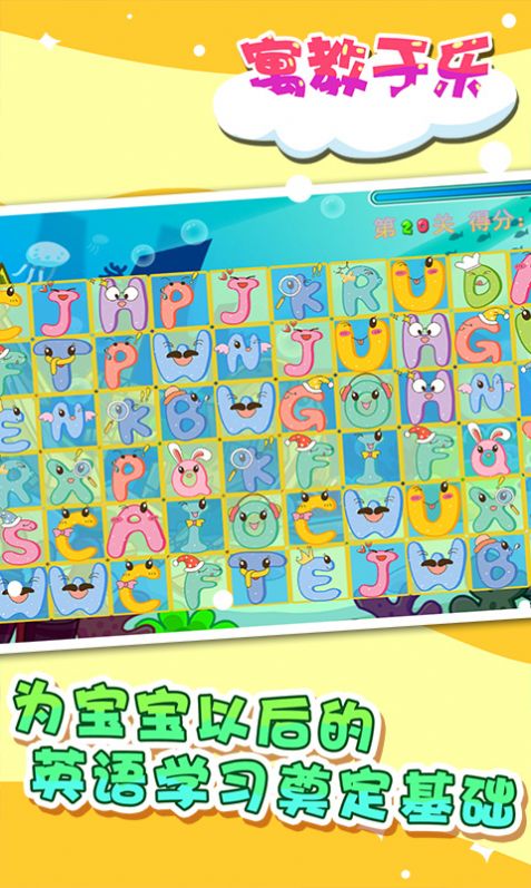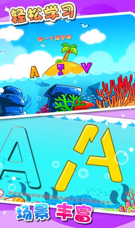 1、面向6岁以下儿童的亲子早教游戏,通过玩游戏让小朋友在益智游戏中学习认识26个字母,