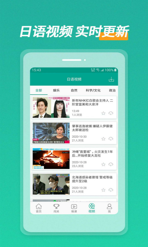 实时中日双语视频,精选NHK等视频新闻,看日语新闻学日语。